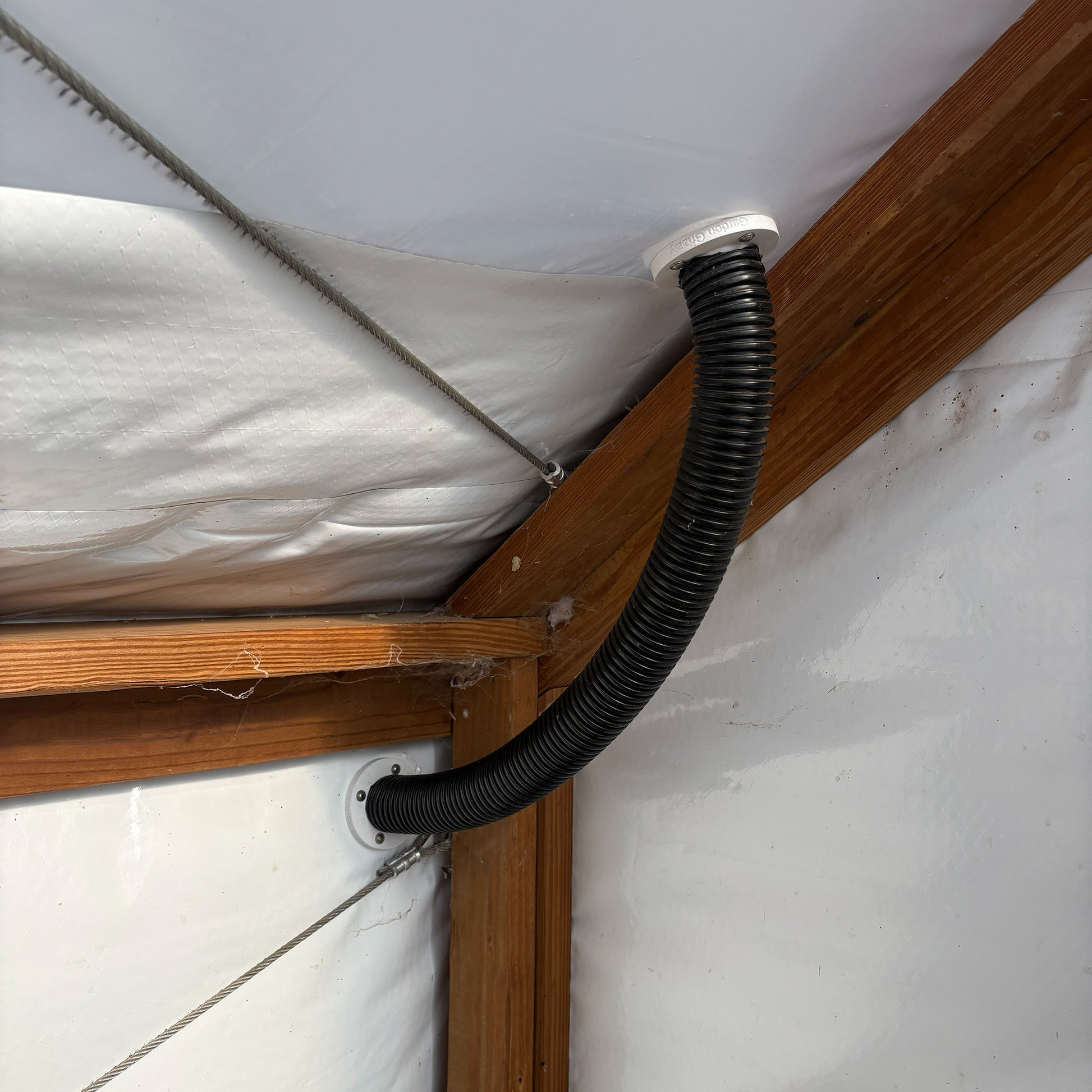 1 Jumper Assembly Kit: 24-inch-long Inflation Jumper for greenhouse. Features one-sided installation without disassembly of plastic membrane to install. 1-1/2” diameter tube and a fitting Fitting on each end. Install between different envelopes on the greenhouse such as roof to end wall to provide air coupling between the two envelopes without having a second inflation fan.